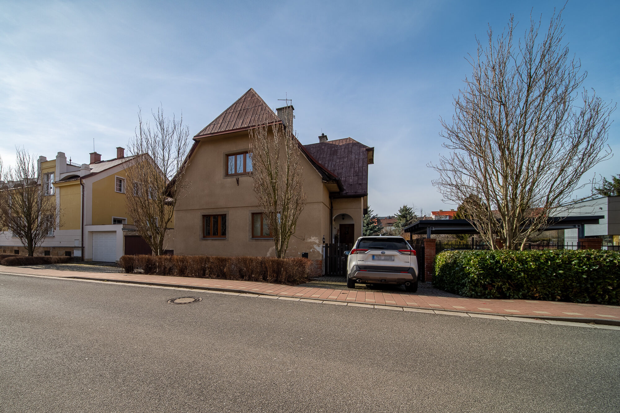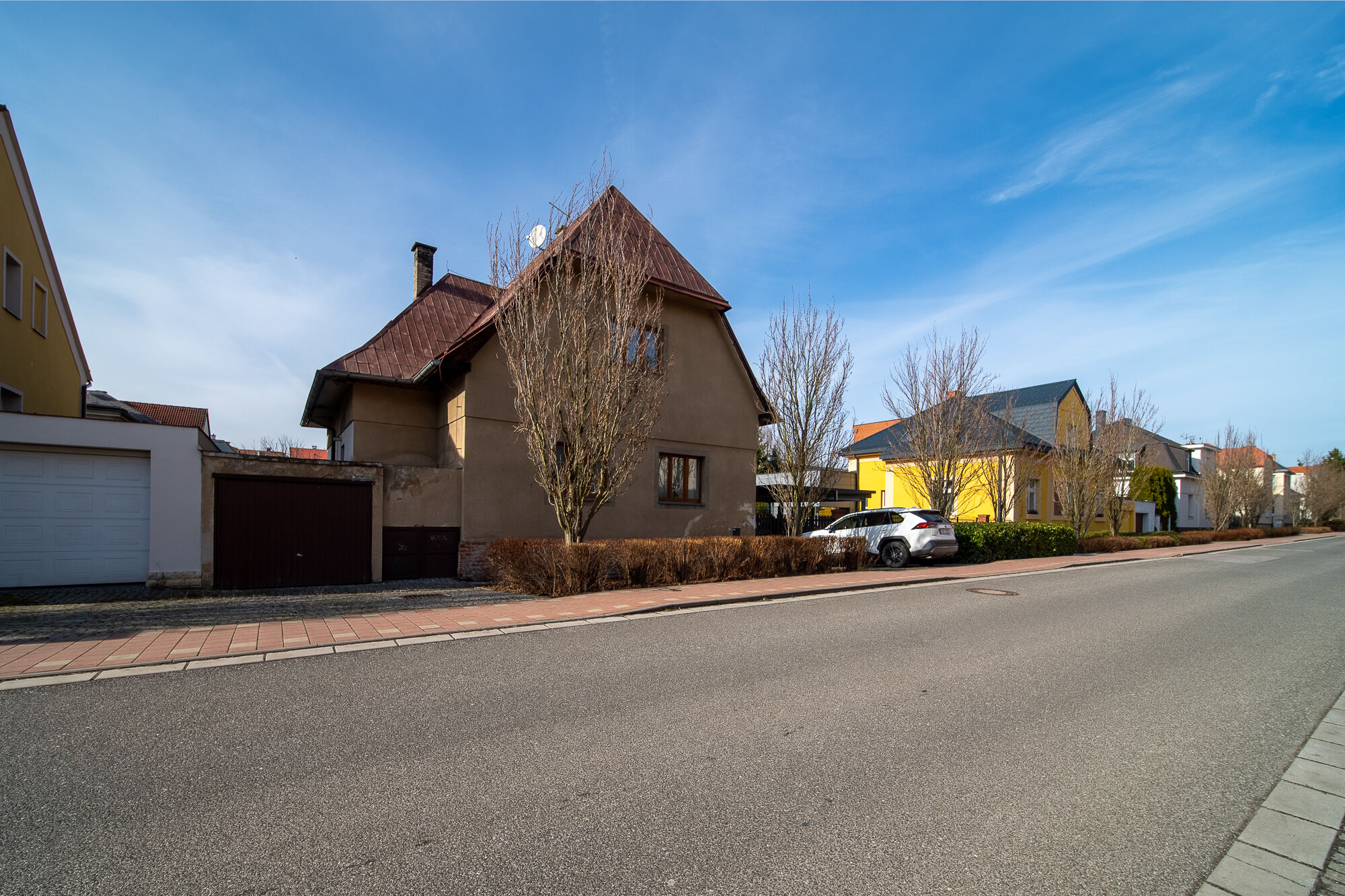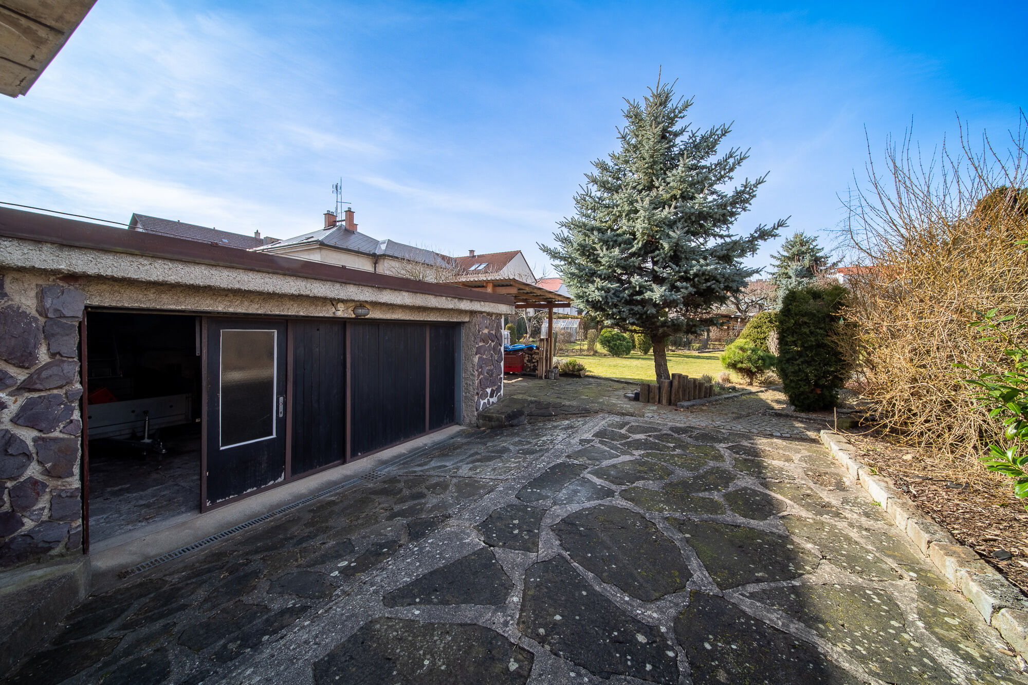 O rodinné příslušníky na 4 kolech zde bude také dobře postaráno. U domu jsou 3 garáže (1 s příjezdem z komunikace, 2 s přístupem z pozemku).