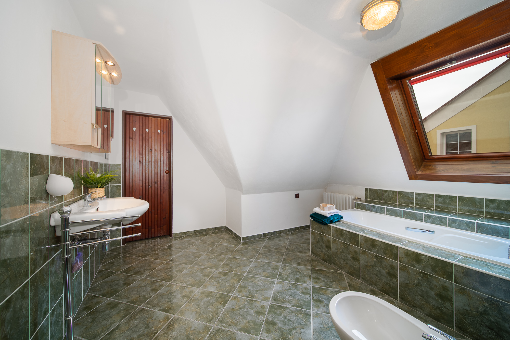 Celá vila procházela v průběhu let rekonstrukcemi a je velice dobrém stavu. Hotová je výměna oken za plastová, rekonstrukce rozvodů vody, plynu i elektroinstalace. Každá bytová jednotka má samostatné vytápění plynovým kotlem, v přízemí je pak možnost využít i topení v krbových kamnech. Pokud potřebujete mnoho prostoru. Jste zde správně. Dům je částečně podsklepený a má i prostorné podkroví. Právě tam se nabízí možnost vestavby. Využití je pouze na Vás. Ateliér, pracovna, posilovna, pokoje pro hosty nebo půdní "zašívárna" pro děti.