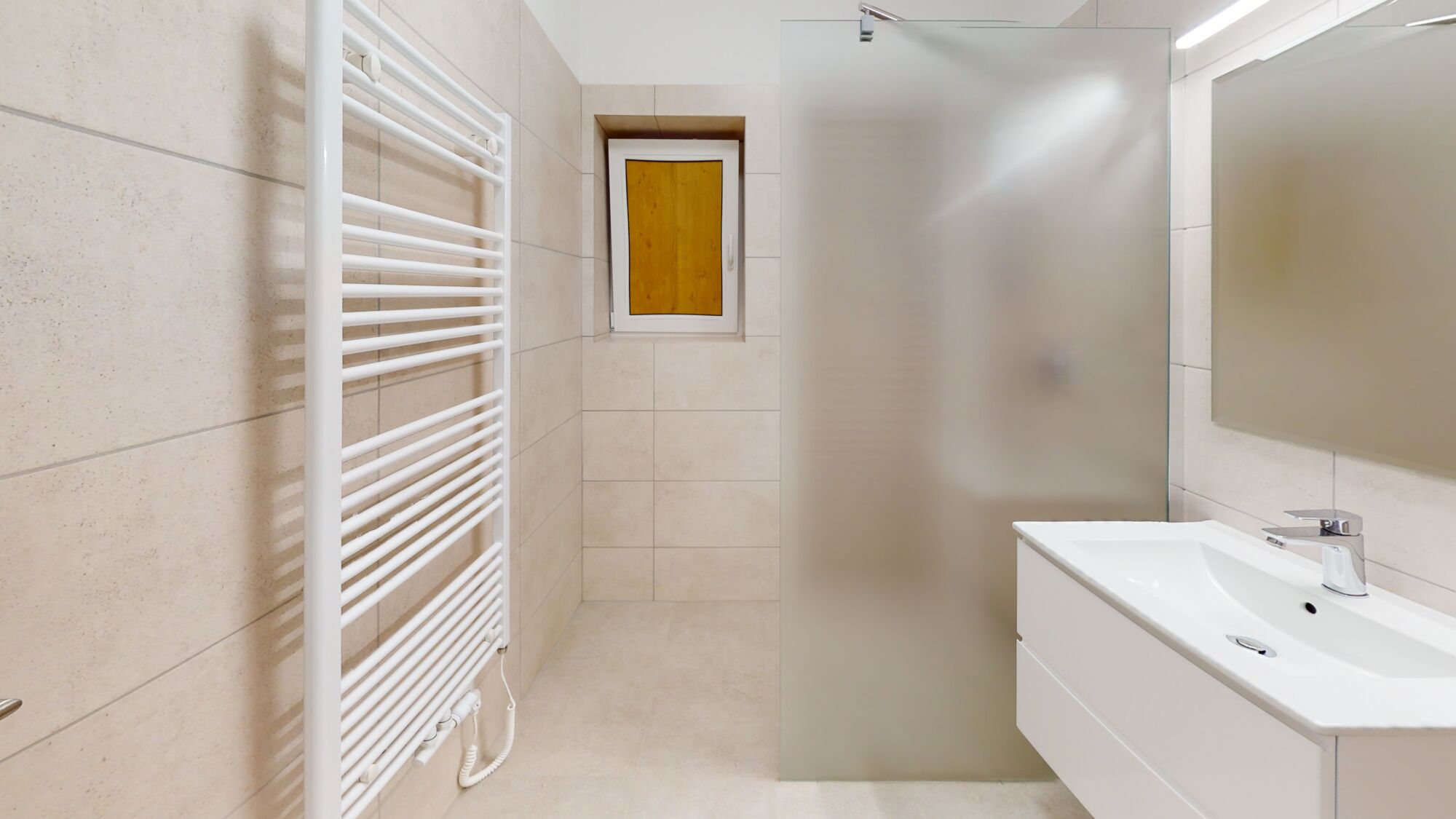 Byt je vybaven zbrusu novou kuchyní, sprchovým koutem walk-in a záchodem s bidetovou sprškou. Jsou zde připravené přípojky na myčku a pračku. Topení je centrální ústřední s plynovým kotlem a o teplou vodu se stará bojler. Spotřebu elektřiny a vody měří podružný měřák a topení se odečítá dálkově.